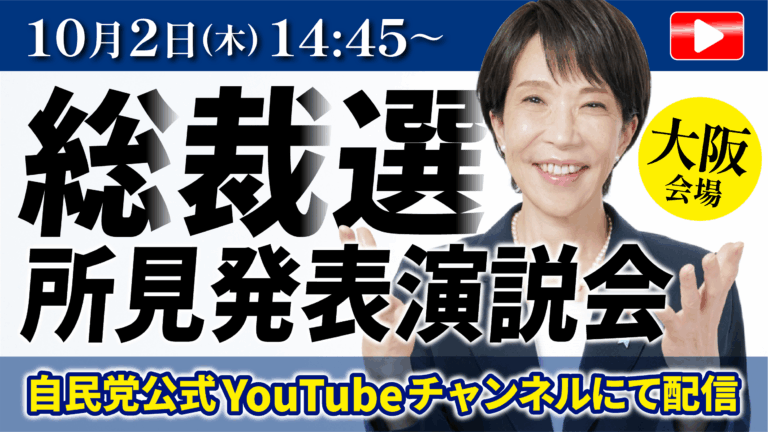 自民党総裁選2025の投開票日にあわせ、YouTubeにて投開票前の決起大会の模様をライブ配信いたし […] -