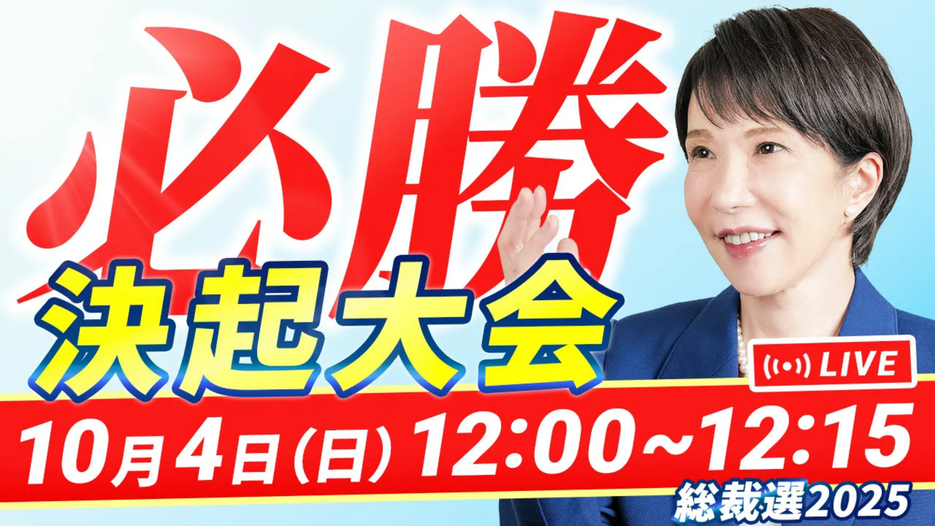 自民党総裁選2025の投開票日にあわせ、YouTubeにて投開票前の決起大会の模様をライブ配信いたします。